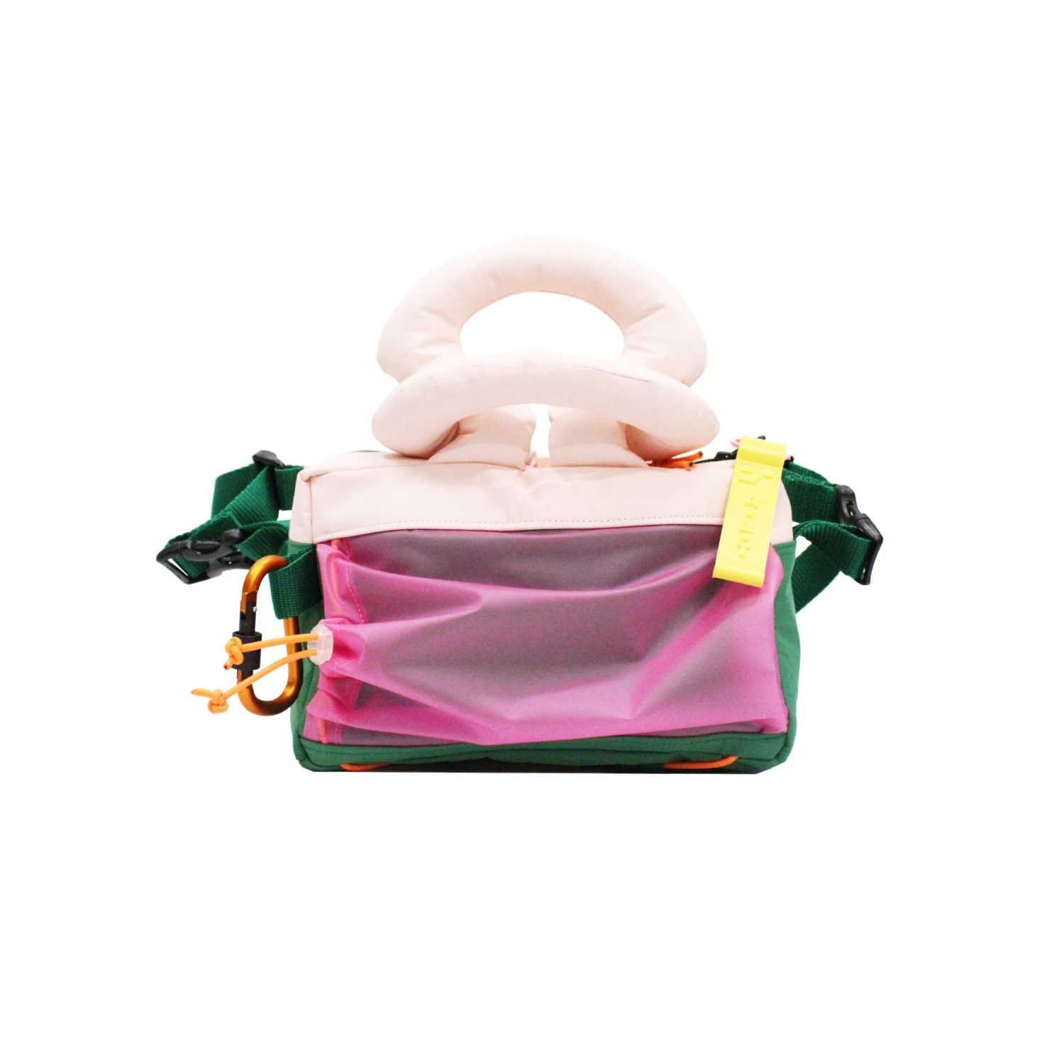 ALT Afida is an omega double wrist handbag. It is made of waterproof fabrics. An external front pocket for bottle in transparent fabrics waterproof neoprene bag opening zip / Rolled plastic clip-on pocket on the back an inside pocket protected by a self-locking double-slider neoprene zip. The independent shoulder strap is adjustable on both sides and has 2 topstitching. double hook clips with elastic. interior zipped pocket