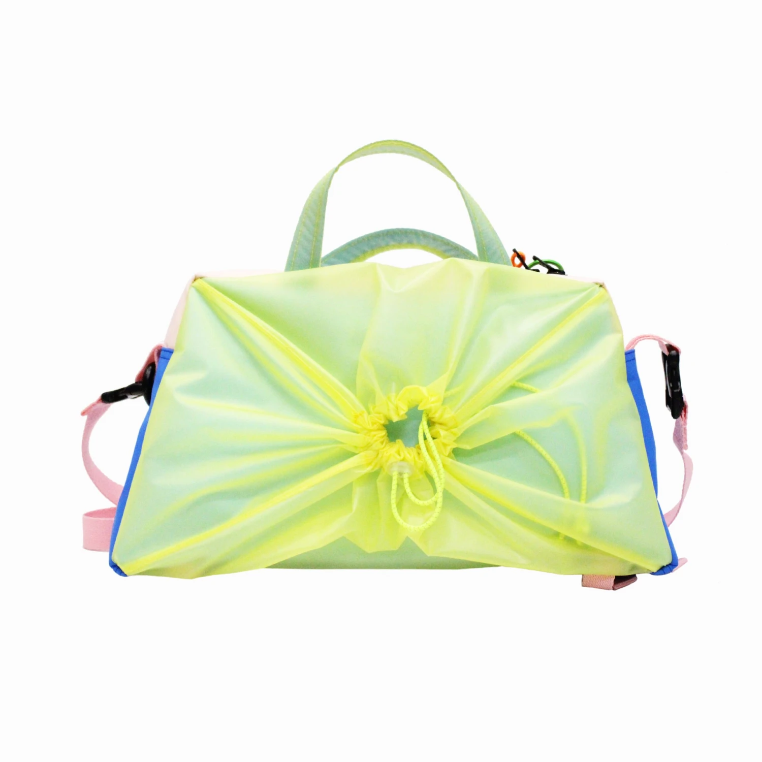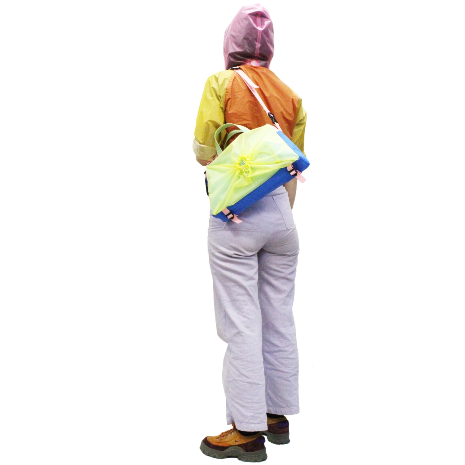 ALT big TDB is a triangular bag with an independent shoulder bag. It is made of waterproof mirror fabrics. One exterior back pocket with waterproof neoprene zip / plastic pocket tightened by drawstring on the front. an inside pocket protected by a self-locking double-slider neoprene zip. interior mesh pocket