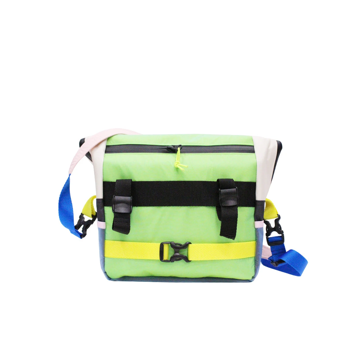 .2 poches extérieures coté – poche extérieure devant centrale – poche impression 3D carte – laçage élastique devant . 1 poche plaquée intérieure. Bretelle sangle ajustable pouvant être utilisé pour le porté bandoulière ou sac à dos . poignée pour porté main. Poche dos zippée . Cordon zig zag devant. clips de fermeture pour format messenger. Clips réglable et bande fixe dos pour fixer le sac sur le guidon du velo