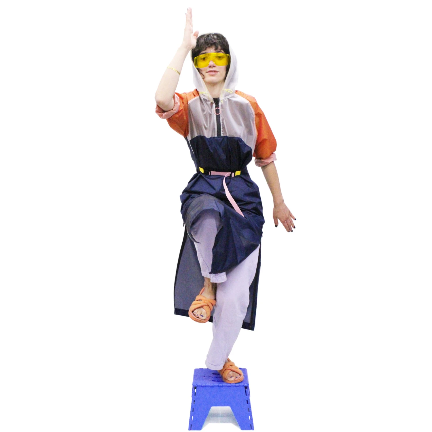 DRS PL8 IS A WATERPROOF POLYESTER / NYLON BLEND / FABRIC JACKET + WATERPROOF ZIPPER. THE HOOD HAS AN ELASTIC FITTED WITH TWO STOPPERS. CUT BROKEN BREAST LINE. RAGLANS SLEEVES. 2 POCKETS. ZIP SIDE TO OPEN. ADVICE ON USE: USE THE UPPER CORD OF THE STOPPER TO TIGHTEN THE HOOD AND MAINTAINING THE STOPPER. THE MODEL IS 5’8 AND WEARS XS-S. (MORE DETAILS ON SIZES PLEASE CONTACT THE STUDIO: [email protected])