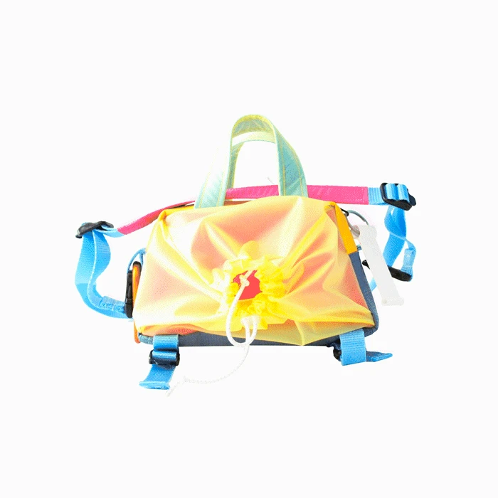 ALT Small TDB is a triangular bag with an independent shoulder bag. It is made of waterproof mirror fabrics. One exterior back pocket with waterproof neoprene zip / plastic pocket tightened by drawstring on the front. an inside pocket protected by a self-locking double-slider neoprene zip. The independent shoulder strap is adjustable on both sides and has 2 topstitching. A worn with “arteries” open possible Tighten the model from below using loops.