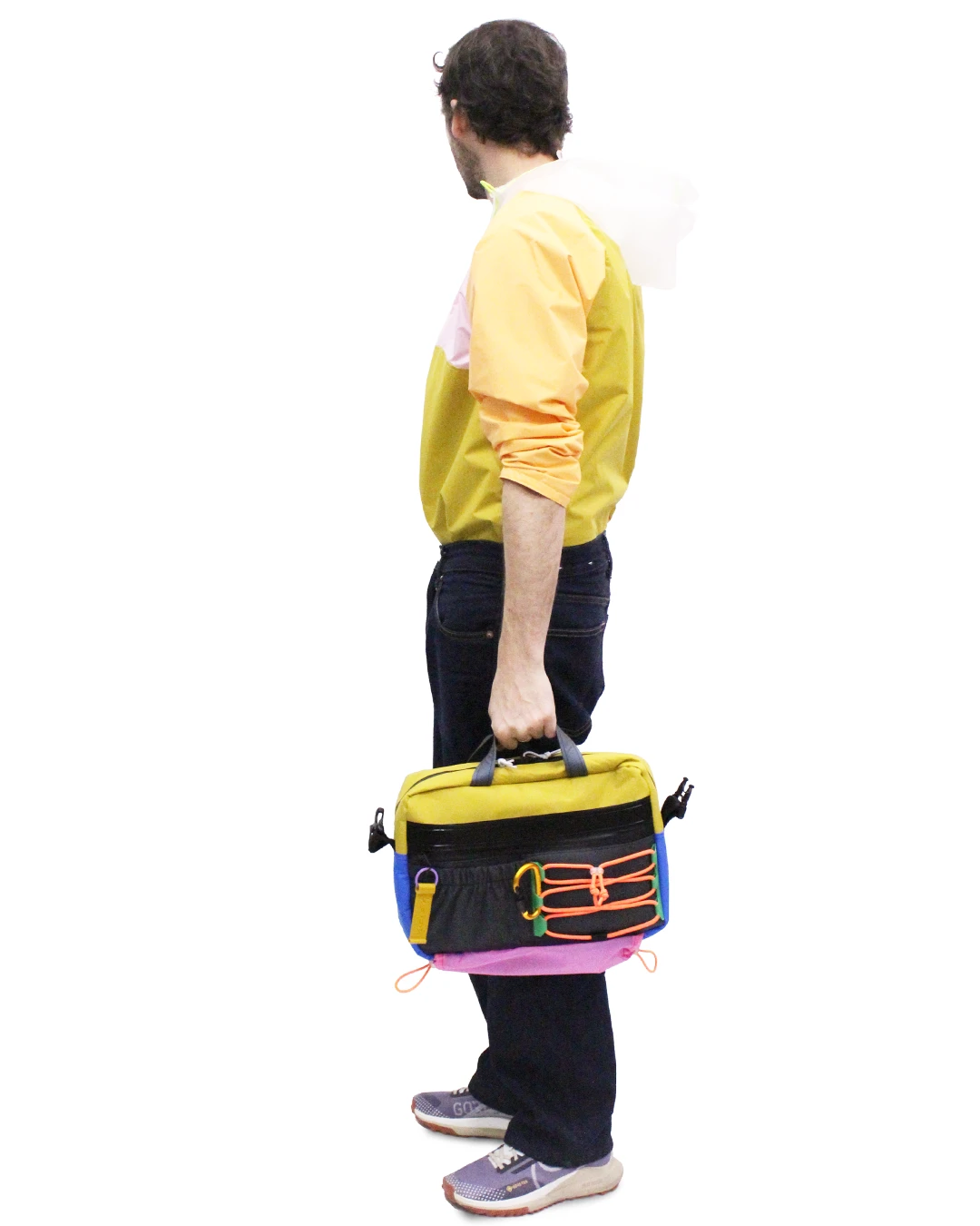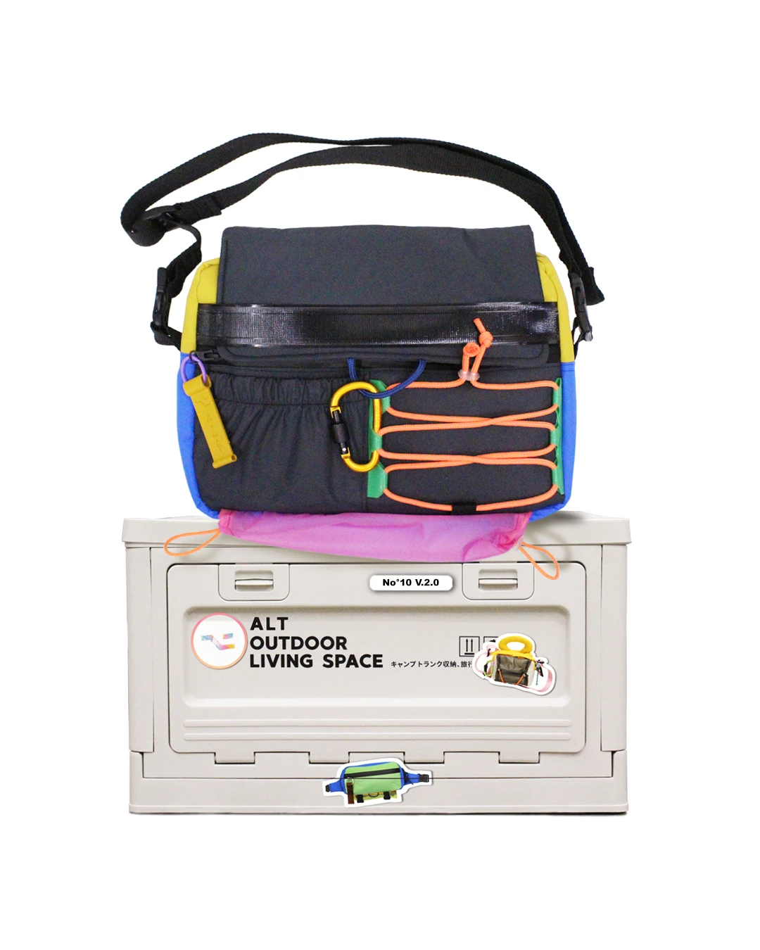 ALT no°10 V2.0 is an independent shoulder bag. It is made of waterproof fabric.An external waterproof neoprene zip pocket / a gathered elastic pocket / a cord compartment with 3D printing loop (for WJ jacket) / PVC pocket for water bottle: umbrella / swimsuit with double reflective elastic tightening on the bottom.