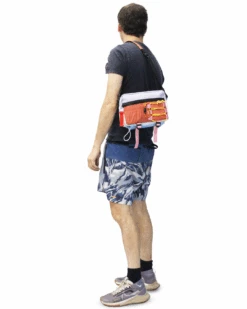 Two possible bag carrying styles: one vertical and one horizontal (clips on the back of the bag)