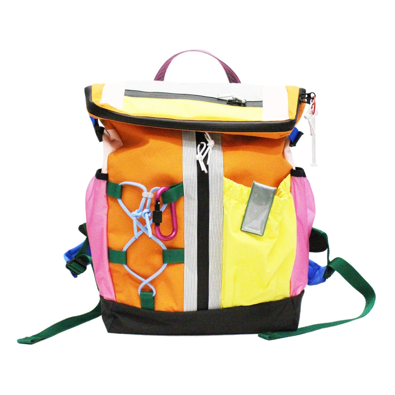 Foldable T8 backpack. waterproof fabric. 2 external elasticated side pockets.