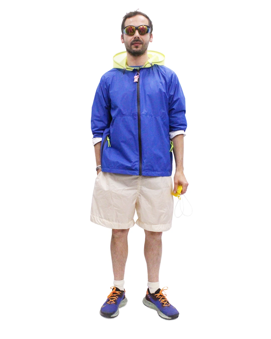WJ IS A WATERPROOF POLYESTER / NYLON BLEND / FABRIC JACKET + WATERPROOF ZIPPER. THE HOOD HAS AN ELASTIC FITTED WITH TWO STOPPERS. CUT BROKEN BREAST LINE. RAGLANS SLEEVES. CUT SLEEVE – 2 FRONT POCKETS. ADVICE ON USE: USE THE UPPER CORD OF THE STOPPER TO TIGHTEN THE HOOD AND MAINTAINING THE STOPPER. THE MODEL IS 5’6 AND WEARS XS/S. (MORE DETAILS ON SIZES PLEASE CONTACT THE STUDIO: [email protected])
