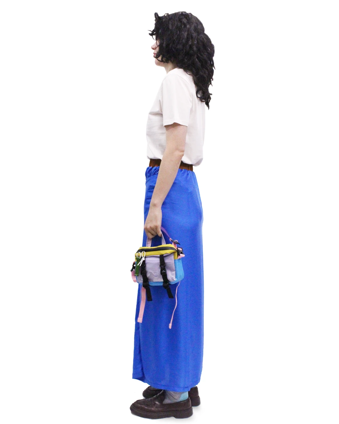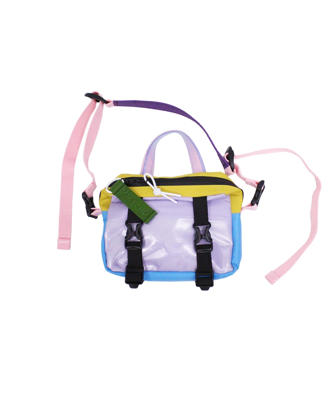 Alt mini Cross over Waterproof is a foldable bag. it has a large interior compartment to put a book; with a patch pocket. Exterior: 3D print logo folder pocket + back pocket with zip. elastic clips to fold it. Two adjustable elastic straps to put on an umbrella or a water bottle. PVC covered handle. Removable and adjustable shoulder strap. ALT logo 3D printed recycled plastic & ♻️