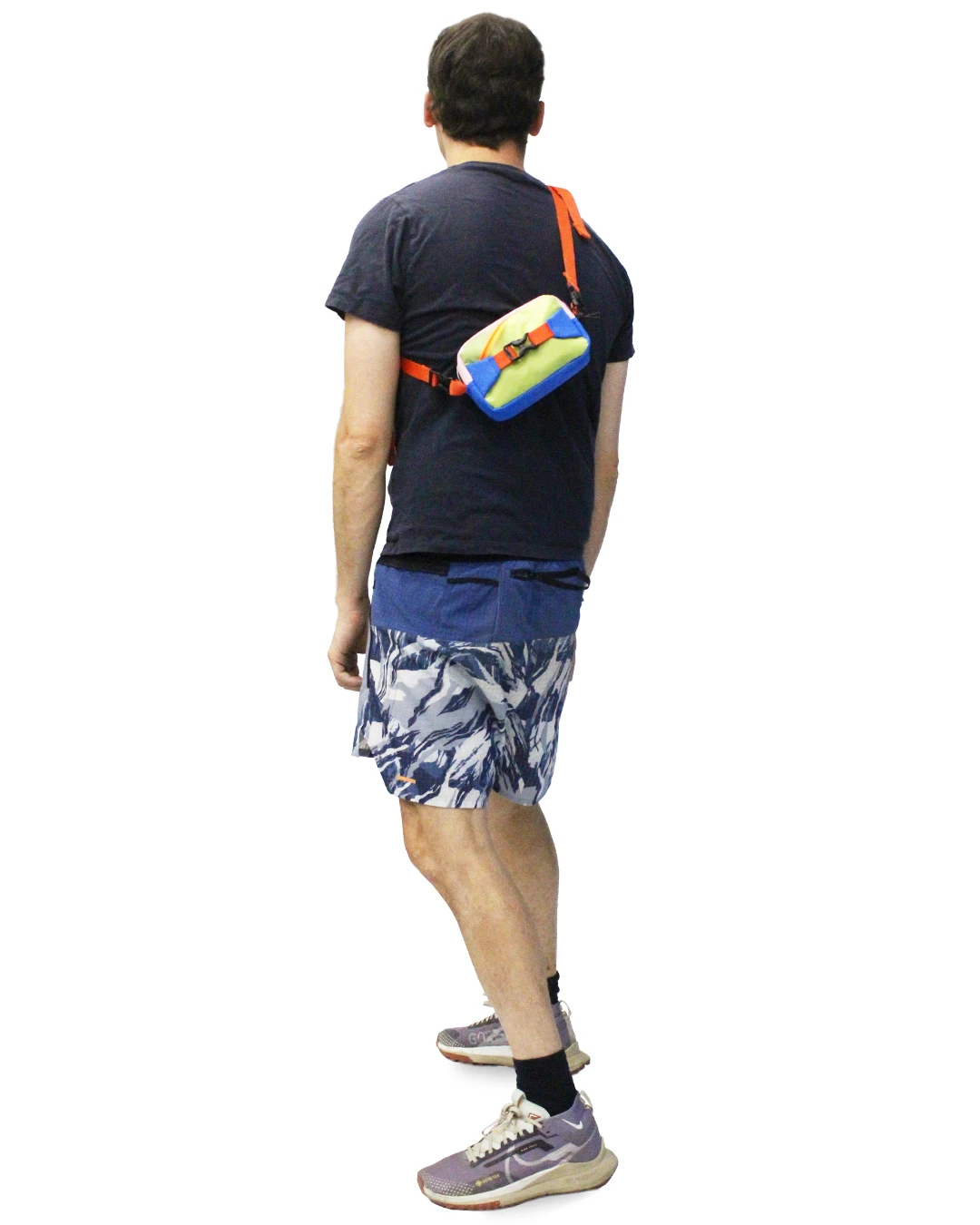 that can be worn at the waist or on the shoulder. Neoprene zip (waterproof)