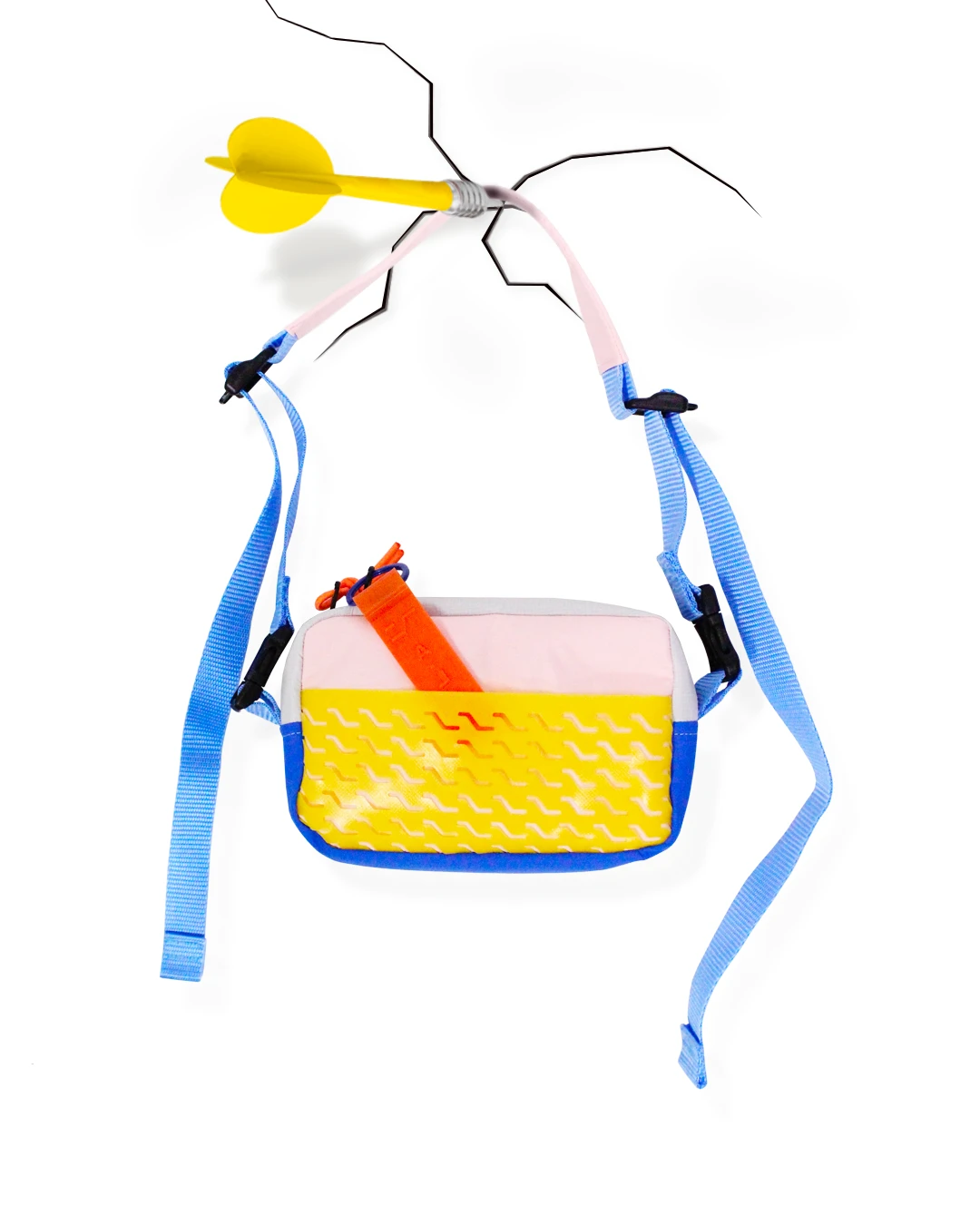 that can be worn at the waist or on the shoulder. Neoprene zip (waterproof)