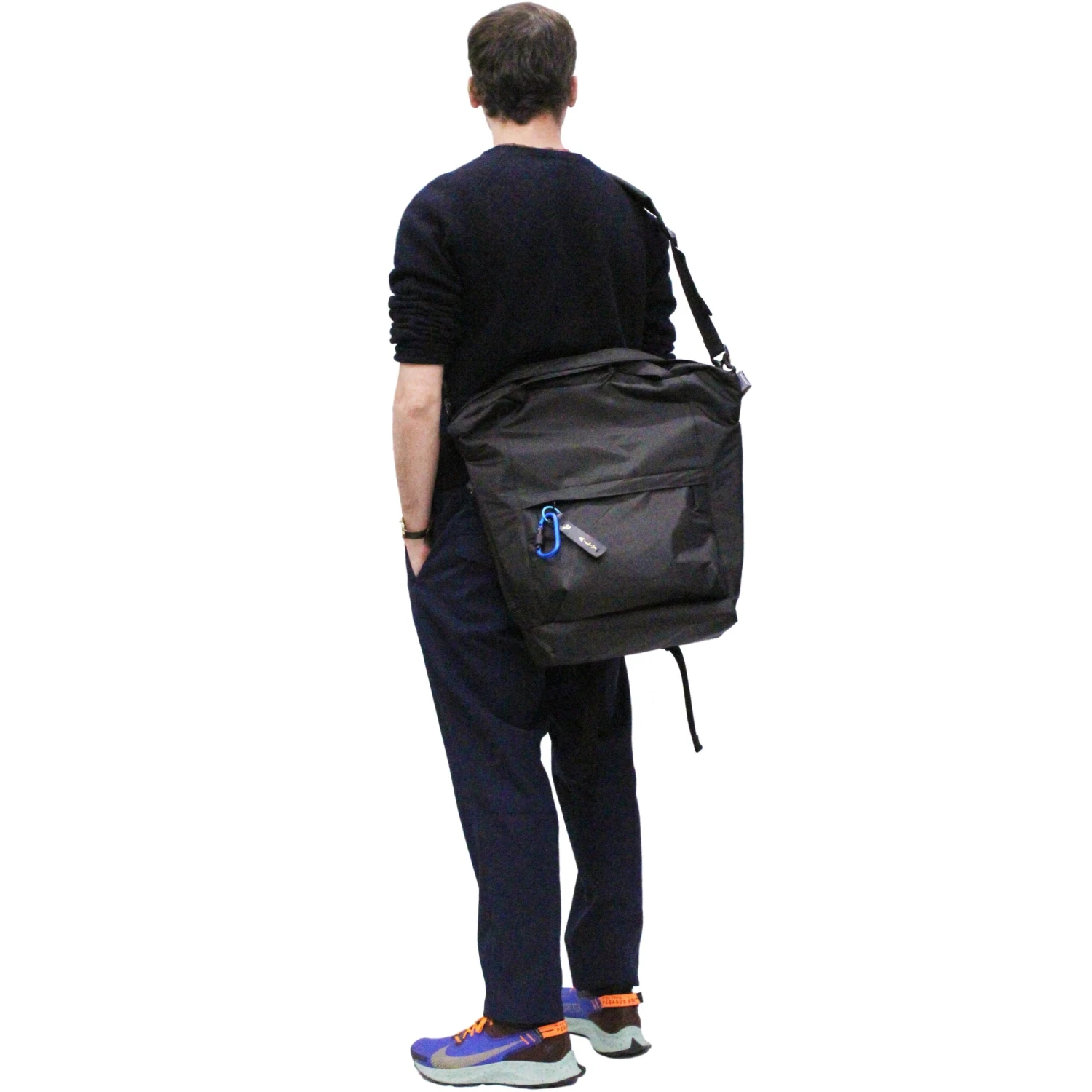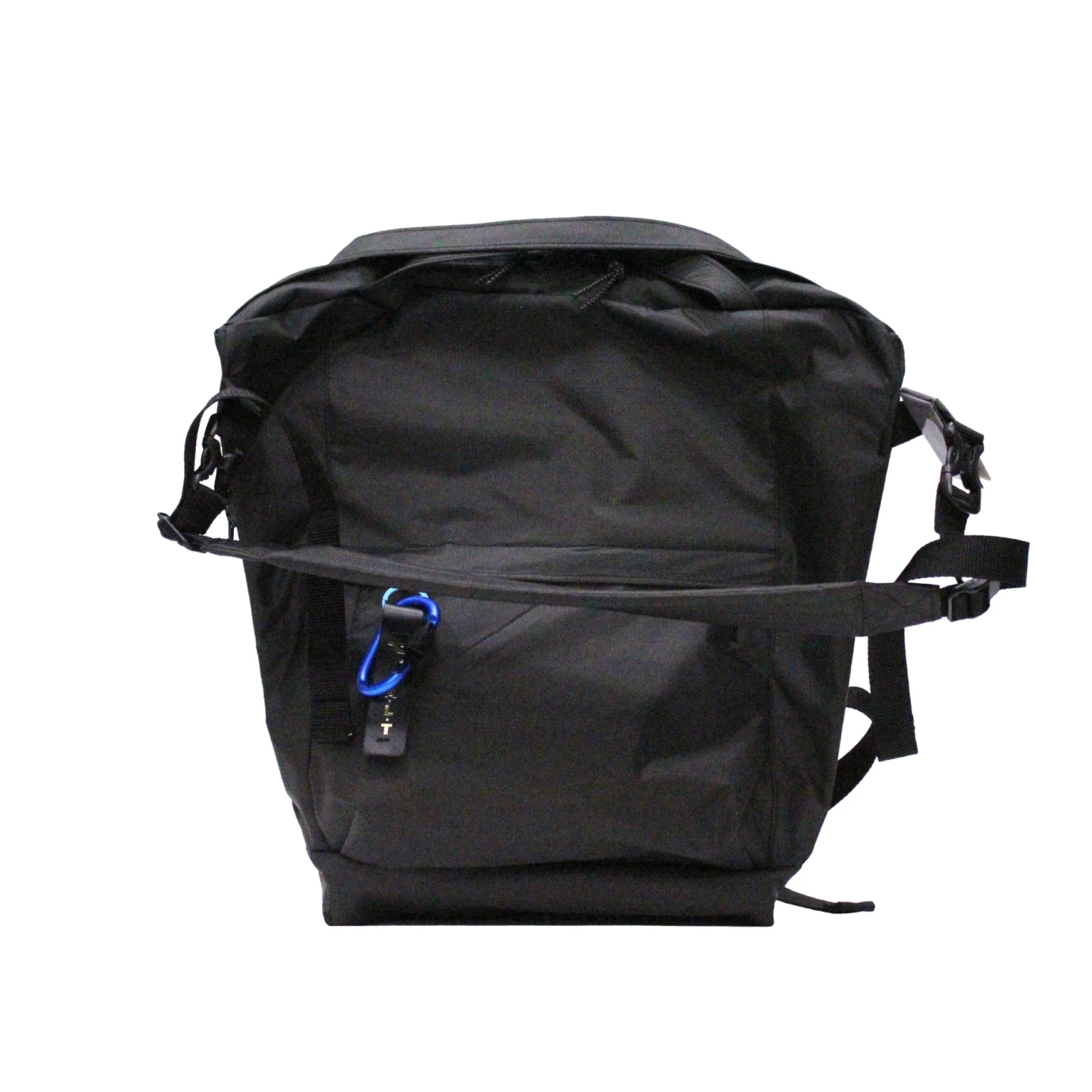 Alt X is a modular sports bag made of waterproof fabric. It has removable suspender that allow it to be transformed as needed: backpack, handbag, shoulder bag. Hight density foam & removable one on the bottom. in the back Its adjustable volume allows you to carry whatever you want with either. ALT X has two exterior pockets (one hide) and three inside pockets: central pocket (very large), pocket for keys or wallet & computer pocket. Capacity 13-17L