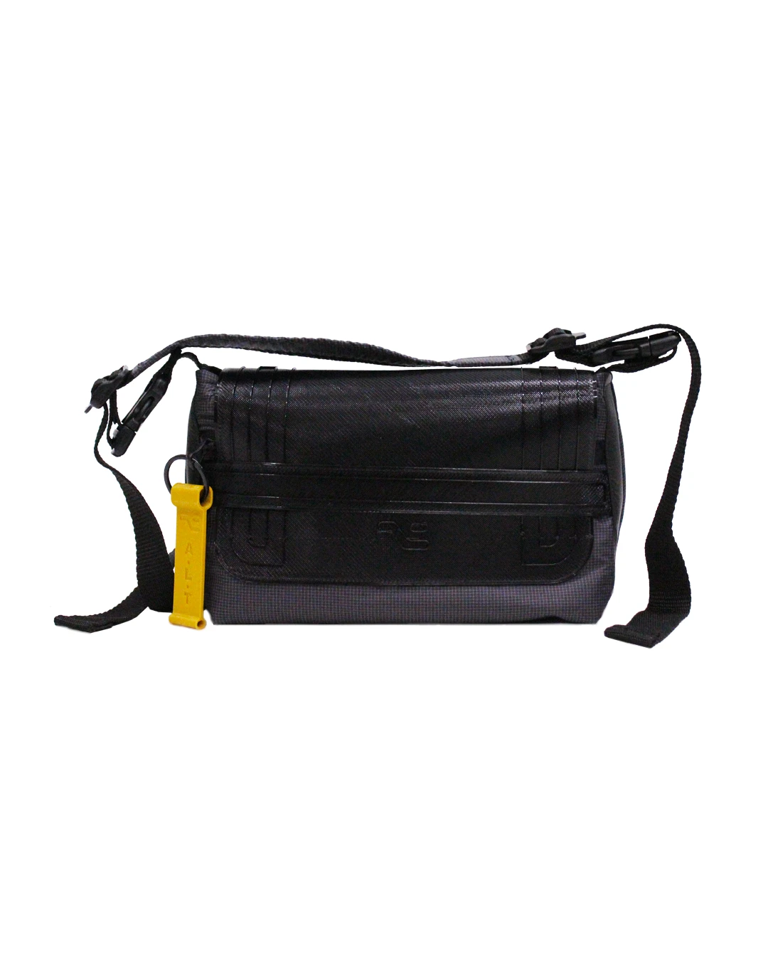 Alt Autobahn is a handbag / shoulder bag made of waterproof fabric with 3D flex print details. 3D relief line and logo print flap. Flap plating strip. Zipped front pocket. Interior protected by a detachable zipper. Cotton lining. Removable and adjustable shoulder strap.ALT logo 3D printed recycled plastic & ♻️