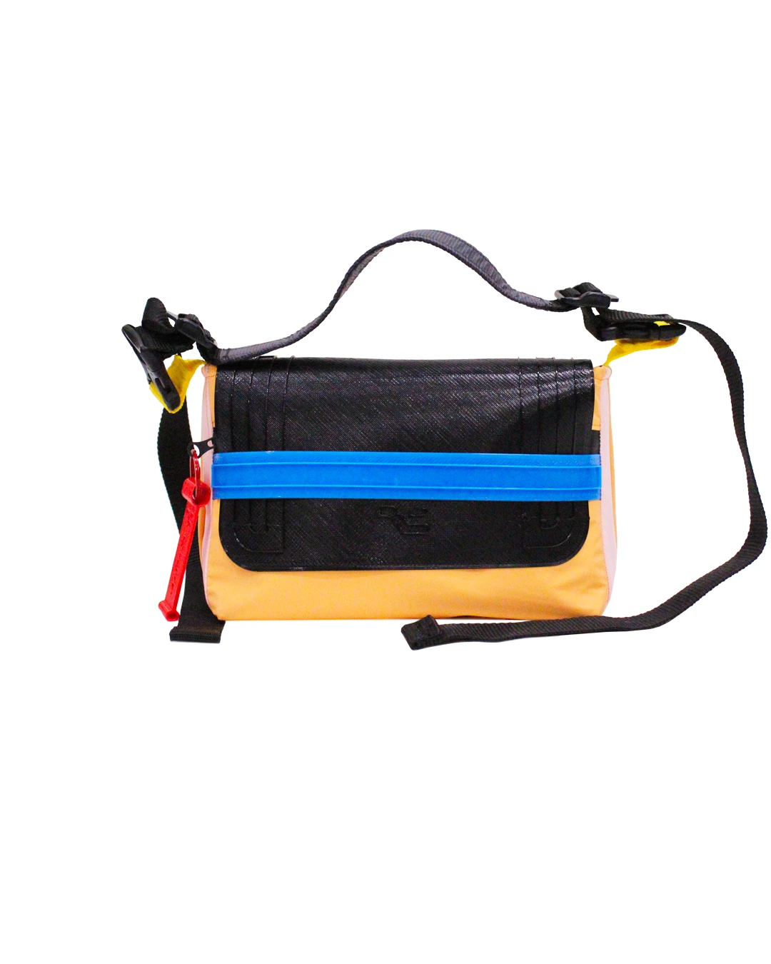 Alt Autobahn is a handbag / shoulder bag made of waterproof fabric with 3D flex print details. 3D relief line and logo print flap. Flap plating strip. Zipped front pocket. Interior protected by a detachable zipper. Cotton lining. Removable and adjustable shoulder strap.ALT logo 3D printed recycled plastic & ♻️