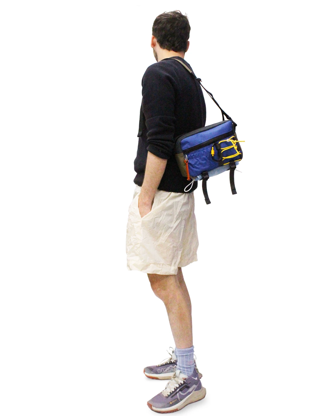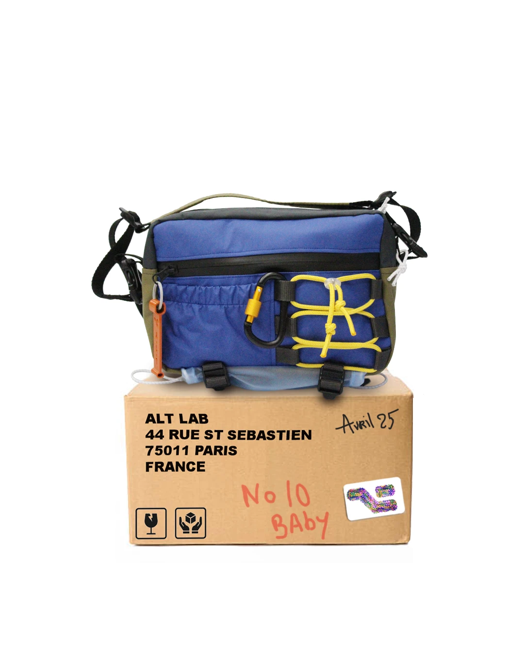ALT no°10 baby est une sacoche à bandoulière indépendante. Elle est réalisé en tissus imperméable mirror. Une poche extérieure zip néoprene imperméable / une poche élastique / un compartiment élastique / poche transparent (pour parapluie ou maillot de bain.